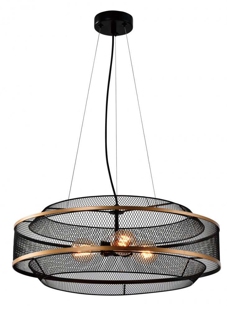 Rivoli Marika - коллекция современных люстр в стиле лофт-кантри. Главная "фишка" - объемный решетчатый абажур из металла. Эффектная мелкая решетка, сочетание матового черного и золотого цветов формируют неповторимый облик светильников Rivoli Marika. Металл имеет стойкое гальваническое покрытие, что защищает светильники потолочные Marika от механических воздействий и выцветания. Металл легкий и прочный. Дизайн создан командой итальянского бренда Rivoli.