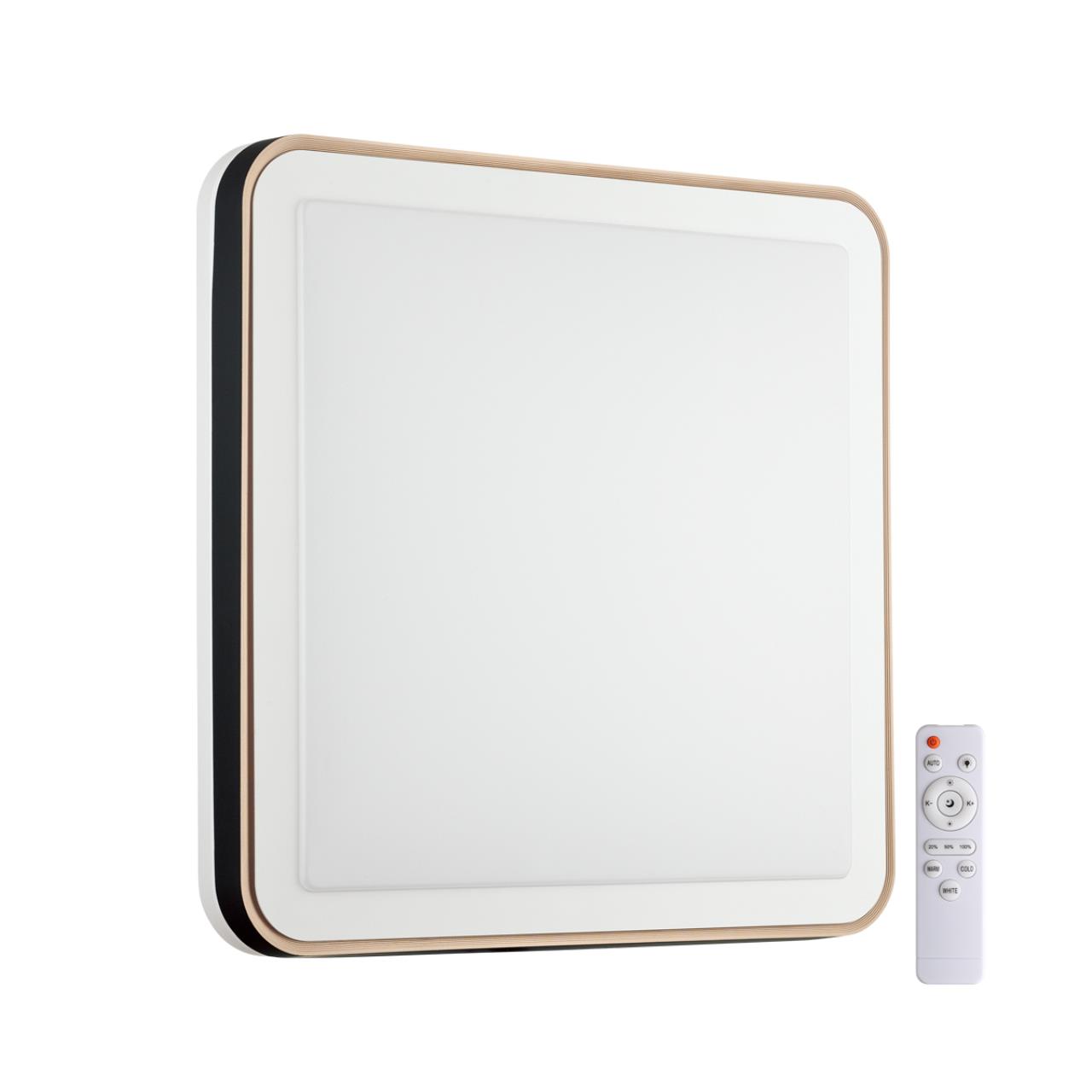 Светильник 7621/DL линии AKUNA состоит из металлического основания (базы) и пластикового рассеивателя. Материал рассеивателя - качественный акрил белого цвета с матовой поверхностью, без текстуры. Пластик обеспечивает светильнику равномерное рассеивание и хорошее светопропускание. Форма плафона: квадратная, декорирована ободом из пластика черного цвета и кантом цвета "медь". На боковой части плафона имеется светящаяся зона, близкая к поверхности, которая красиво подсвечивает потолок, стену. Степень защиты IP43 позволяет использовать светильник в определенных зонах влажных помещений. В комплект входит заменяемый LED модуль с линзами, мощностью 48Вт, которая соответствует лампе накаливания 430Вт. А также пульт ДУ, с помощью которого осуществляется плавное изменение цветовой температуры 3000-4200-6300К, изменение яркости, переход в режим переключения теплого/белого/холодного/ночного света. Светильник имеет функцию "память".