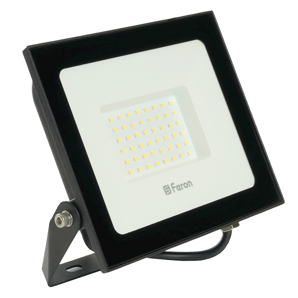 Прожектор светодиодный многоматричный с монтажным креплением на кронштейн, (ДО) FERON LL-931, 70W, 6400К (холодный белый), 230V/50Гц, 7000Lm, IP65, угол рассеивания 120°,*SMD2835, раб.t -40°C - +40°C, цвет чёрный, корпус алюминий литой под давлением + стекло, 183*169*29 мм