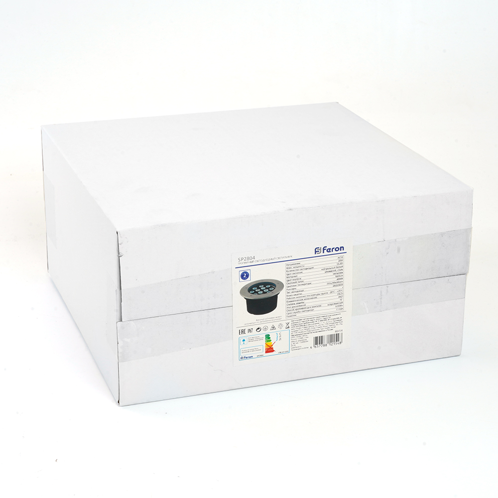 Тротуарный светильник светодиодный, встраиваемый (ДВУ) FERON SP2804, 20W, 4000К (нейтральный белый), AC12V/50Гц, 1600Lm, IP67, угол рассеивания 15°, 18LED*SMD3030, класс защиты 3, цвет металлик, корпус алюминий, сталь, 200*200*90мм, D внутр. 170мм