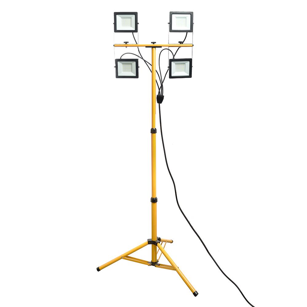 Прожектор с солнечной панелью на штативе, (ДО) FERON LL-506, 4*50W, 6400К (холодный белый), 230V/50Гц, 18000Lm, IP65, угол рассеивания 120°,*SMD2835, раб.t -40°C - +40°C, цвет черный-желтый, корпус алюминий литой под давлением + стекло, 482*430*1720мм (штатив+ голова) мм