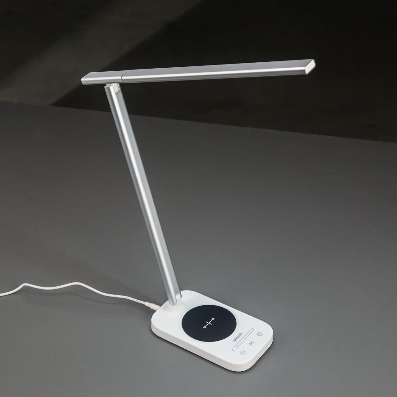 Светодиодная настольная лампа Ньютон оснащена модулем беспроводной зарядки. Площадка беспроводной зарядки выделена цветом для удобства установки на зарядку Вашего гаджета. Лампа имеет usb-разъем, позволяющий заряжать устройства с помощью кабеля. Настольная лампа снабжена очень удобной функцией «таймер отключения». При активации этой функции светильник отключится через сорок пять минут автоматически. Данная возможность позволит вам расслабиться при чтении, не переживая, что Вы уснёте, а лампа будет включена всю ночь. На панели управления присутствует кнопка переключения цветовой температуры, доступны три режима – холодный, теплый и нейтральный свет. Световой поток - 750 люменов, что делает настольную лампу Ньютон CL803051 одной из самых ярких среди аналогов. Сенсорный выключатель с дополнительной подсветкой и памятью уровня яркости поможет не только найти кнопку выключения в темноте, но и сохранить ваши персональные настройки, сокращая время подготовки к последующему использованию. Яркость свечения плавно регулируется от минимальной до максимальной. Шарнирные системы светильника продуманы до мельчайших подробностей – регулировки есть как вверх/вниз светящей части, так и основного корпуса. Также светящую часть можно провернуть по кругу относительно горизонтальной плоскости направления света, меняя таким образом угол рассеивания так, как Вам удобно в той или иной ситуации. Светодиоды имеют рабочий ресурс – 50000 часов, это составляет около 15 лет при ежедневном использовании минимум по 8 часов в сутки. Данная модель выполнена в бело-серебристом цвете.