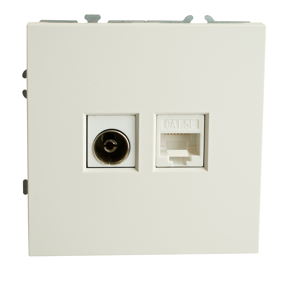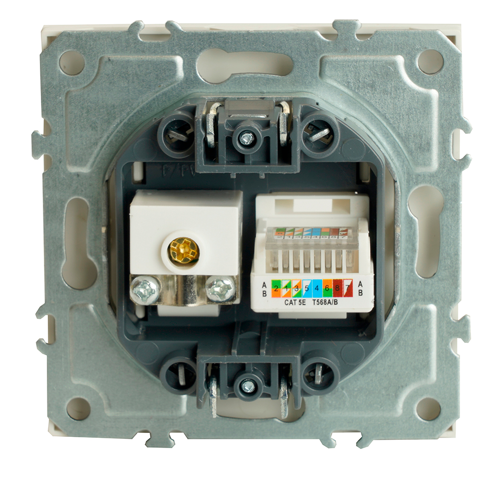 Розетка STEKKER RST00-5106-01 (75Ом, 5-862МГц, CAT.5E) на 2 гнездо, -, -. Материал: поликарбонат, латунь, сталь, цвет белый фарфор, soft touch, размер 71*71*37,5мм. Номинальное напряжение -, номинальный ток -, диапазон рабочих температур 0..+35°C, 20