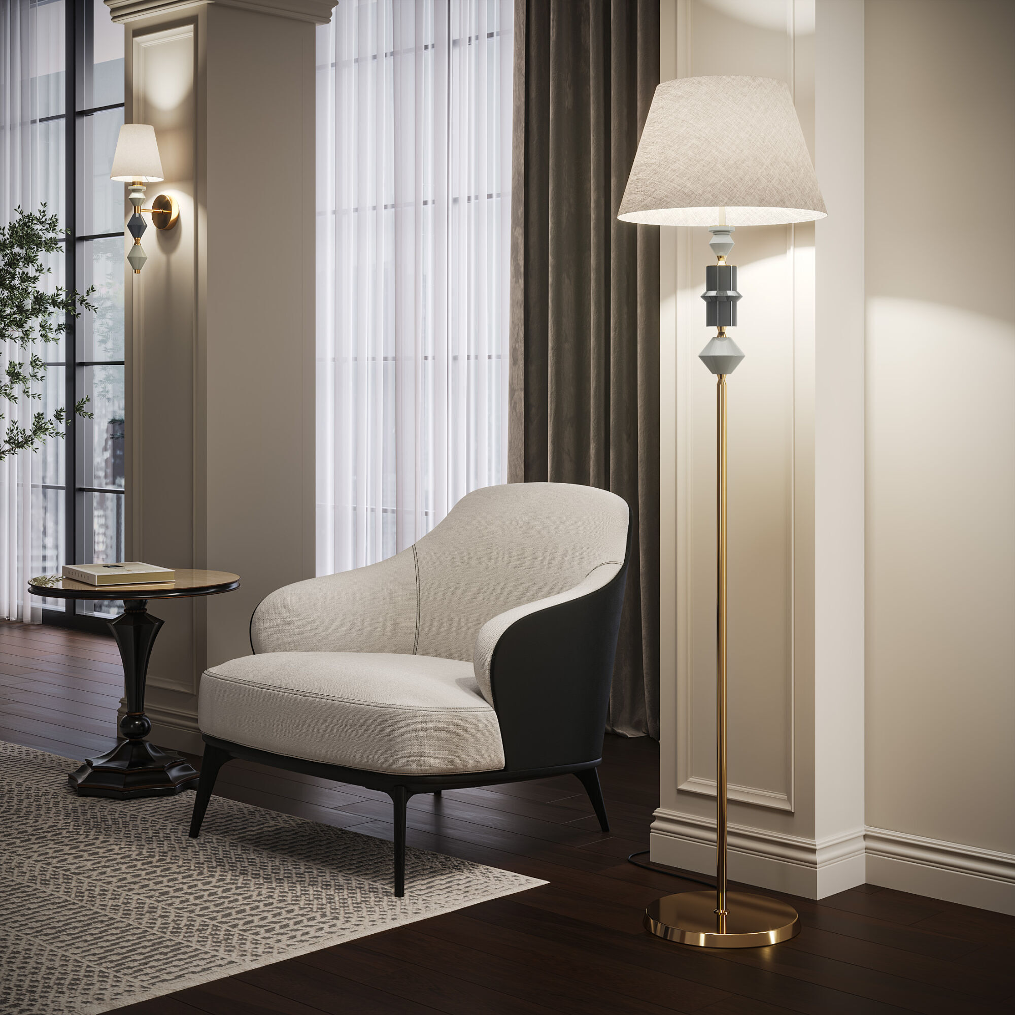 Арматура в цвете латунь придает торшеру легкость и воздушность, а нейтральный абажур создает мягкий, рассеянный свет.Декоративные элементы из керамики добавляют торшеру уникальности и шарма.Благодаря своему нейтральному дизайну, торшер легко впишется в интерьеры различных стилей – от классики до минимализма.