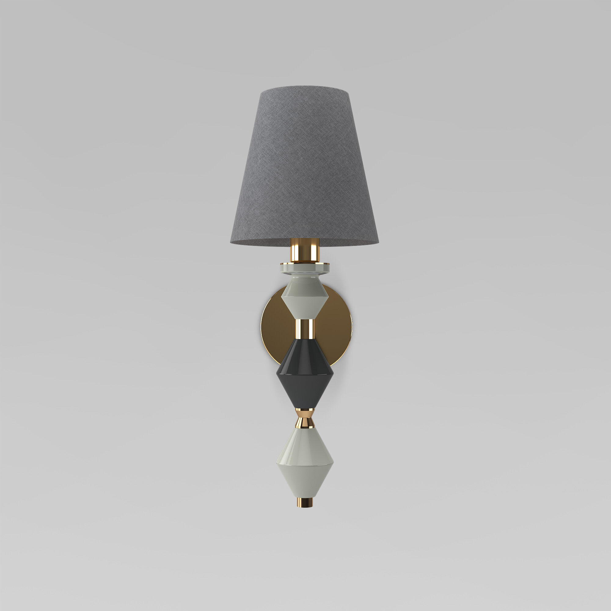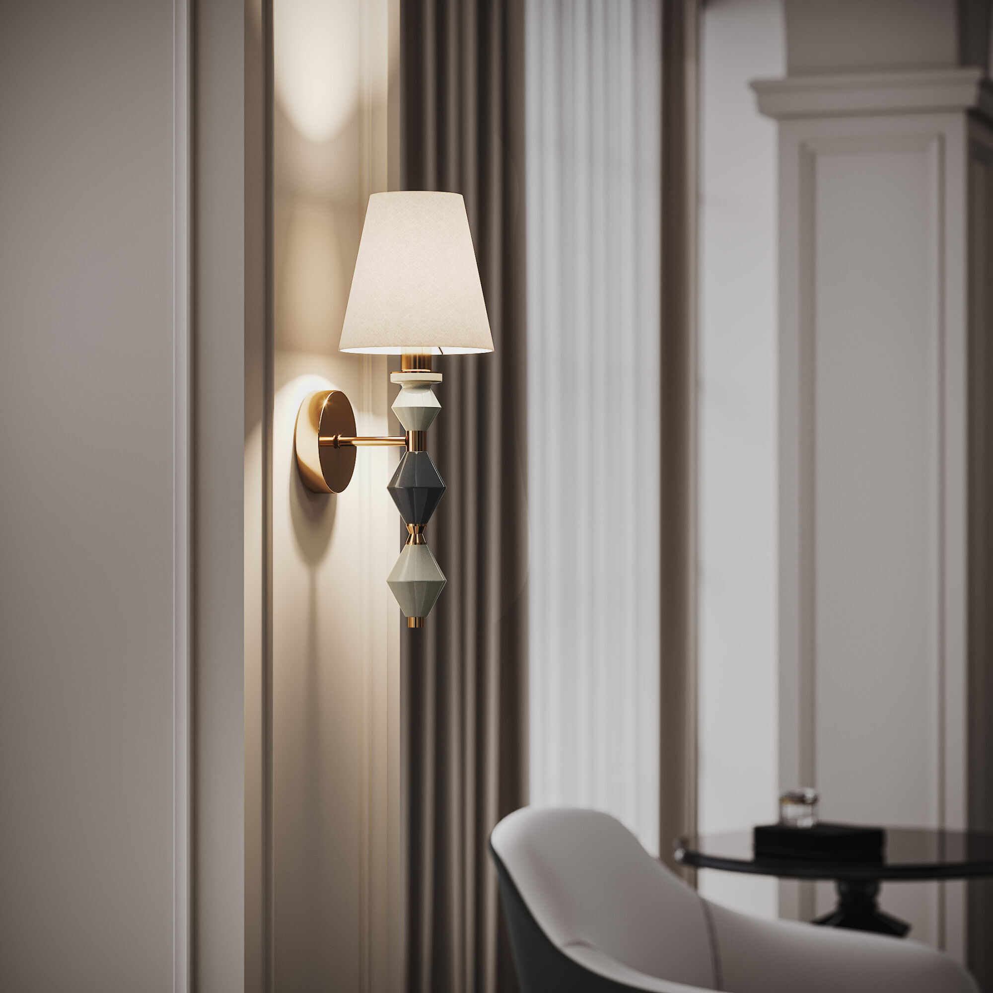 Настенный светильник 103012 идеально подходит для создания акцентного освещения в темных углах комнаты. Декор из керамических элементов в форме ромбов придает светильнику современный и запоминающийся вид. Контрастное сочетание цветов – светло-серый, молочный и латунный – создает визуально привлекательный акцент в интерьере. Сочетание классической формы и современного дизайна делает светильник универсальным дополнением к любому интерьеру, от минимализма до ар-деко.