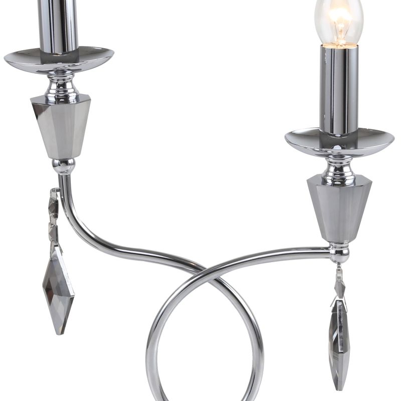 Светильник настольный из коллекции Grace / Грейс выполнен из металла, гальванизированного в цвет тонированного хрома, и декорирована массивами хрусталя и хрустальными подвесками в форме ромба цвета тонированного хрома. Премиальное качество и неповторимыи? дизаи?н светильников идеально подои?дут как в классические, так и в современные интерьеры.
