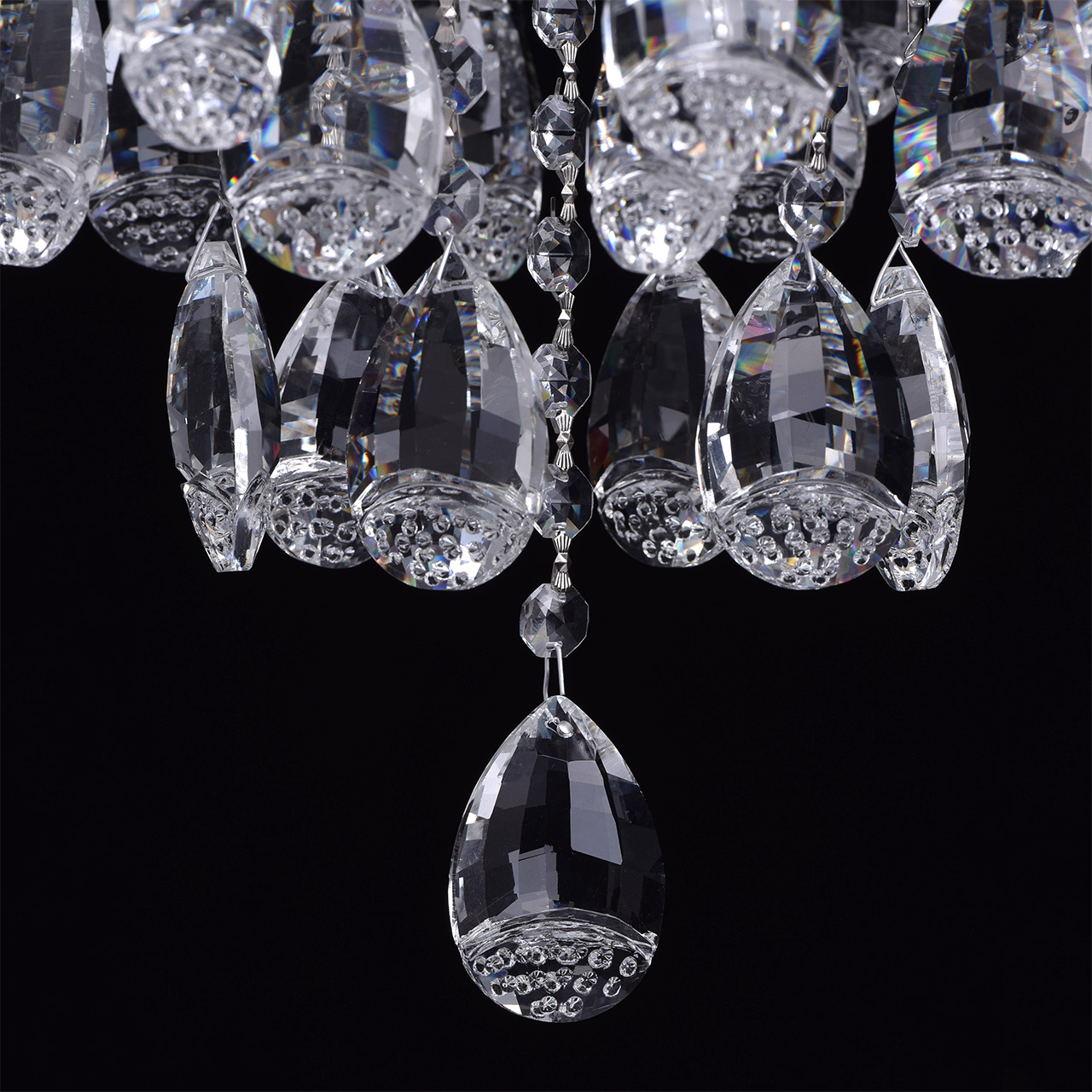 Ослепляющая своим сиянием, люстра из коллекции «Бриз» привнесет в обстановку комнаты праздничный блеск. Цвета французского золота, никеля или хрома, - а именно в этих тонах выполнено металлическое основание, - всегда выгодно сочетаются с хрустальным декором. Гроздья подвесок необычной формы огранки, и декоративные элементы из хрустального стекла создают заманчивую игру света. Помимо удачных внешних сочетаний, светильник продуман и в техническом отношении: подойдет для стандартных потолков, имеет высокие параметры освещенности порядка 18 кв.м.